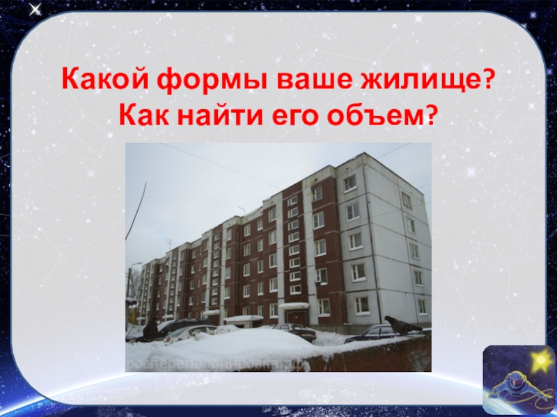 Слайд 10Какой формы ваше жилище? Как найти его объем?