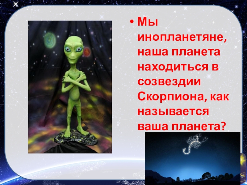 Слайд 6Мы инопланетяне, наша планета находиться в созвездии Скорпиона, как называется ваша