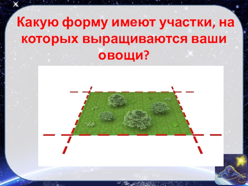 Слайд 11Какую форму имеют участки, на которых выращиваются ваши овощи?