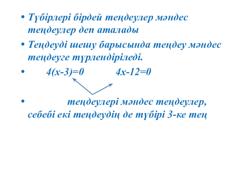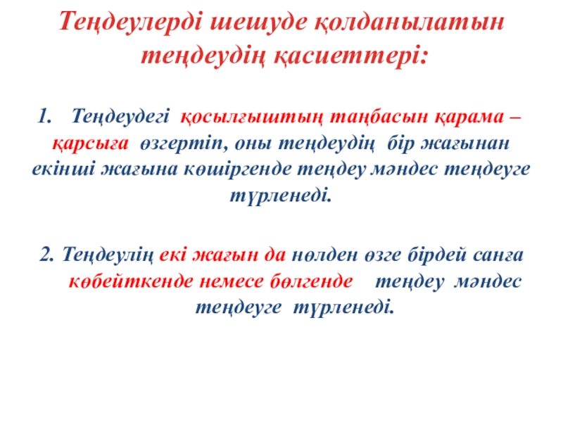 2. Теңдеулің екі жағын да нөлден өзге бірдей санға көбейткенде немесе бөлгенде теңдеу мәндес теңдеуге түрленеді.