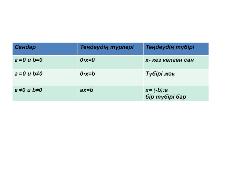 Анықтама. ах=b түріндегі теңдеу (мұндағы х –айнымалы, а және b –қандай да бір сандар) бір айнымалысы бар сызықтық теңдеу деп аталады.