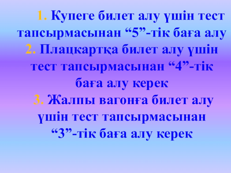 В деңгей плацкарттағы оқушыларға