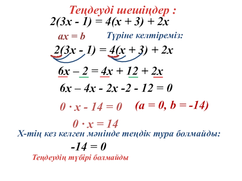 2(3х - 1) = 4(х + 3) – 14 + 2х