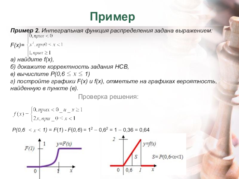 Р(0,6 1) = F(1) - F(0,6) = 12 – 0,62 = 1 – 0,36 = 0,64