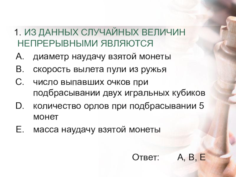 в результате опыта она принимает числовые значения, которые можно перечислить или поставить им в соответствие элементы счётного множества