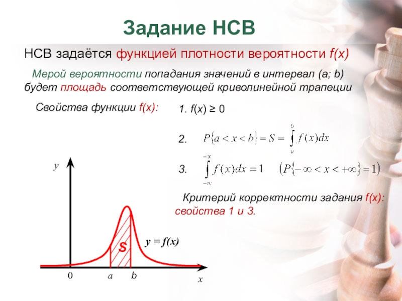 Пусть мерой вероятности попадания значений в интервал (a; b) будет площадь соответствующей криволинейной трапеции