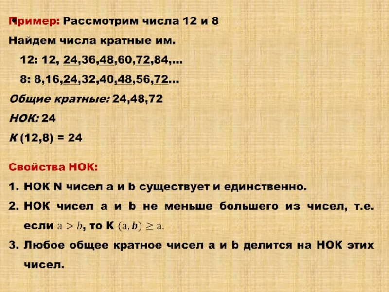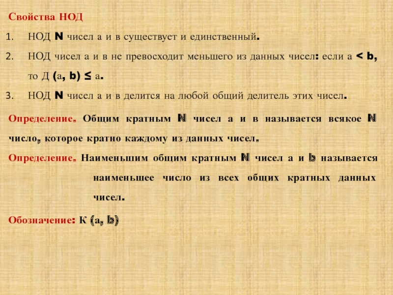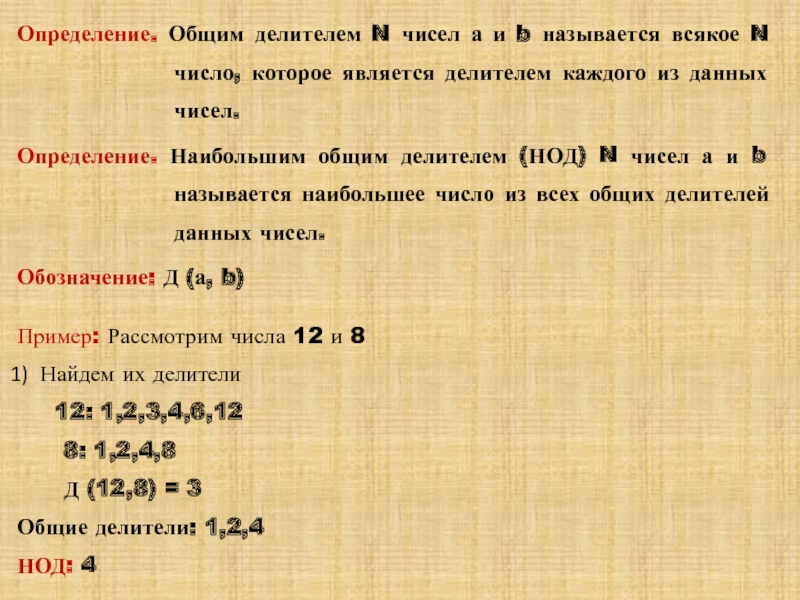 делитель(НОД) и наименьшее общее кратное(НОК)»
