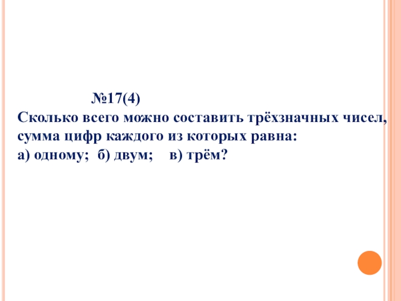 всего можно составить трёхзначных чисел, сумма цифр каждого из которых равна: