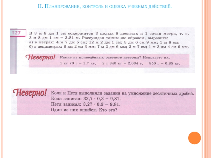 Слайд 4II. Планирование, контроль и оценка учебных действий.