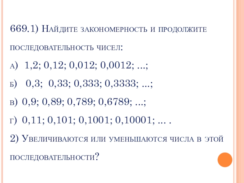 Слайд 46669.1) Найдите закономерность и продолжите последовательность чисел: