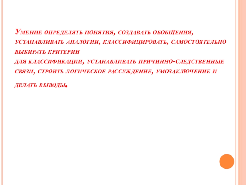 Слайд 27Умение определять понятия, создавать обобщения, устанавливать аналогии, классифицировать, самостоятельно выбирать критерии
