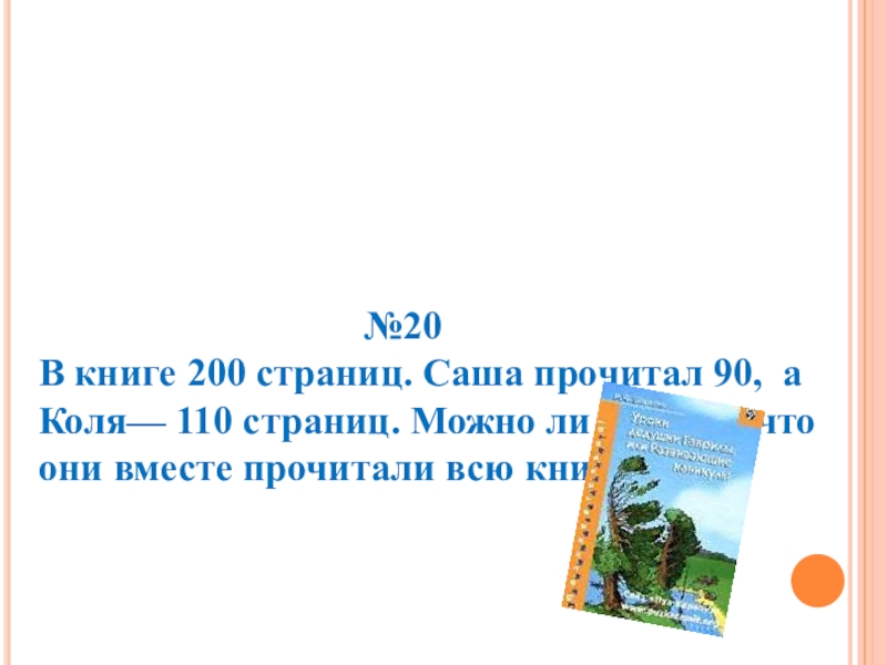 В книге 200 страниц. Саша прочитал 90, а Коля— 110 страниц. Можно ли сказать, что они вместе прочитали всю книгу?