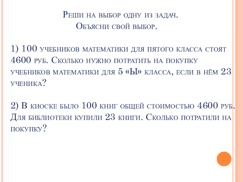 1) 100 учебников математики для пятого класса стоят 4600 руб. Сколько нужно потратить на покупку учебников математики для 5 «Ы» класса, если в нём 23 ученика?