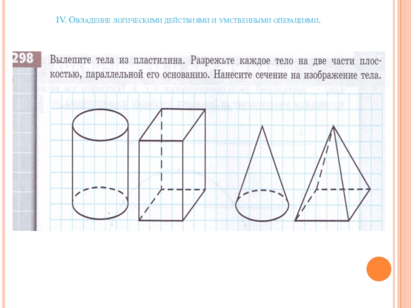 Слайд 12IV. Овладение логическими действиями и умственными операциями.