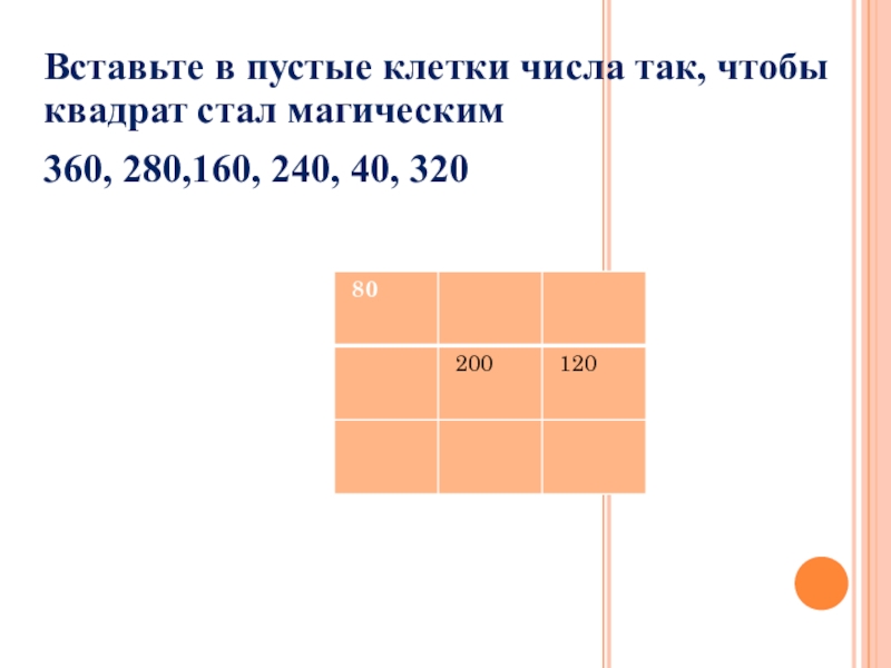 Вставьте в пустые клетки числа так, чтобы квадрат стал магическим