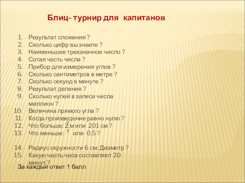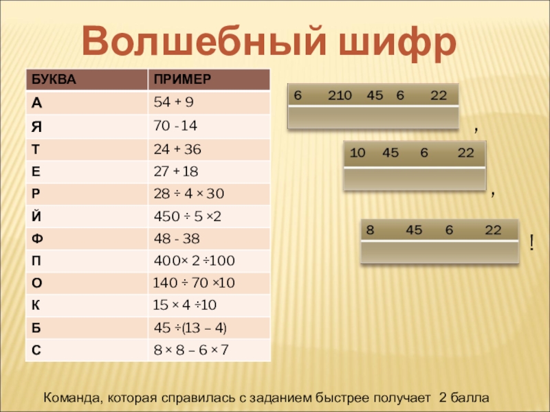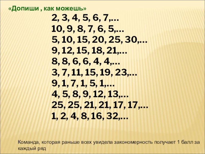 Команда, которая раньше всех увидела закономерность получает 1 балл за