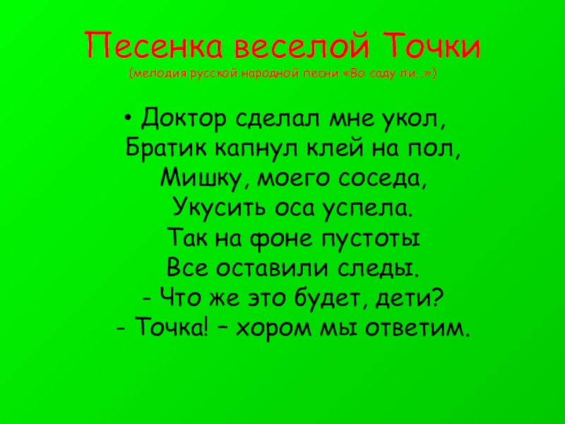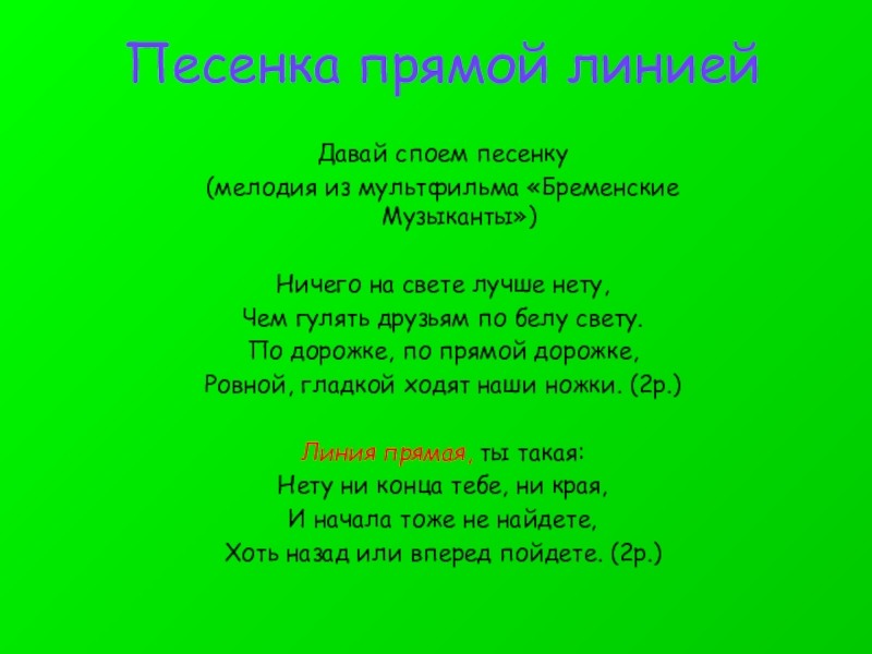 1. Пение песенок о Веселой Точке, Прямой линии.