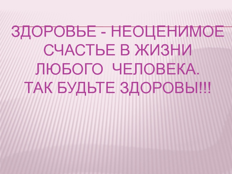 Слайд 8Здоровье - неоценимое счастье в жизни любого человека. Так будьте здоровы!!!