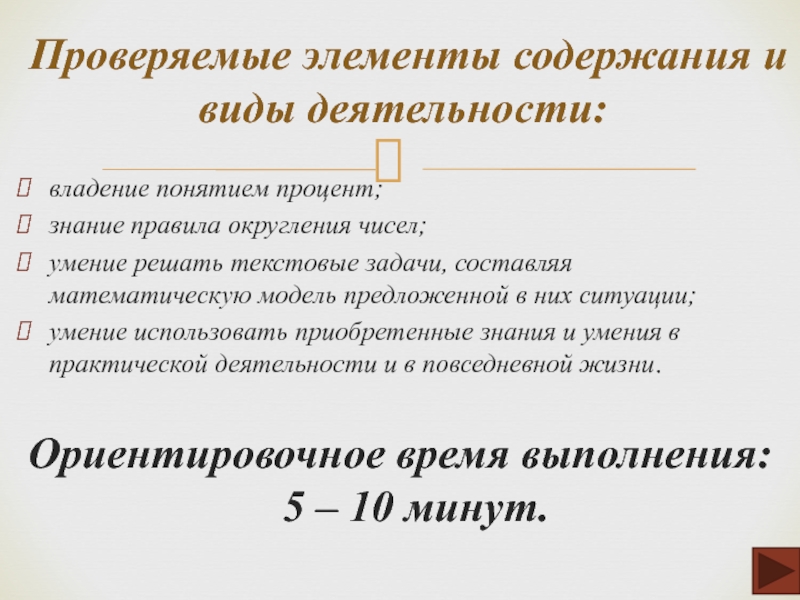 Проверяемые элементы содержания и виды деятельности: