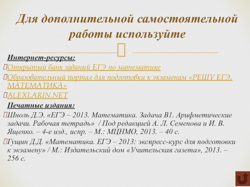 Для дополнительной самостоятельной работы используйте