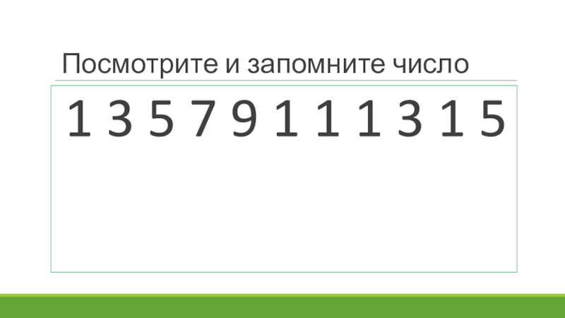 Посмотрите и запомните число1 3 5 7 9 1 1 1 3 1 5