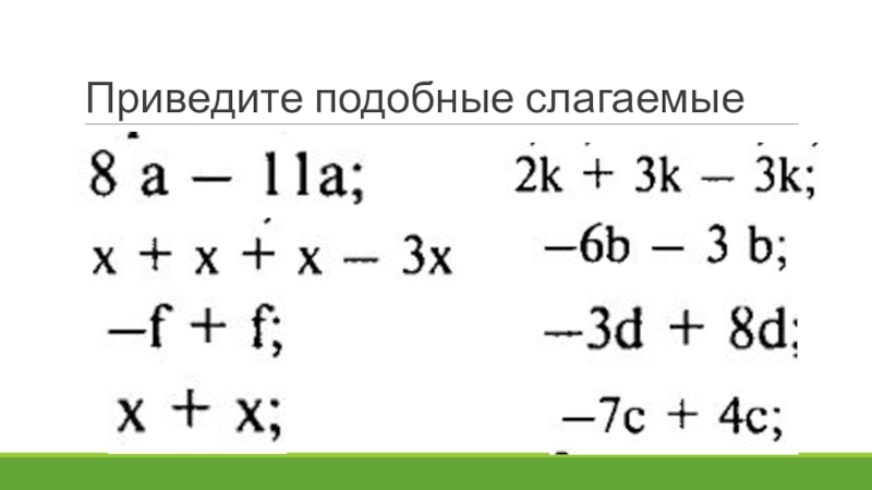 Презентация, доклад Подобные слагаемые. Приведение подобных слагаемых.