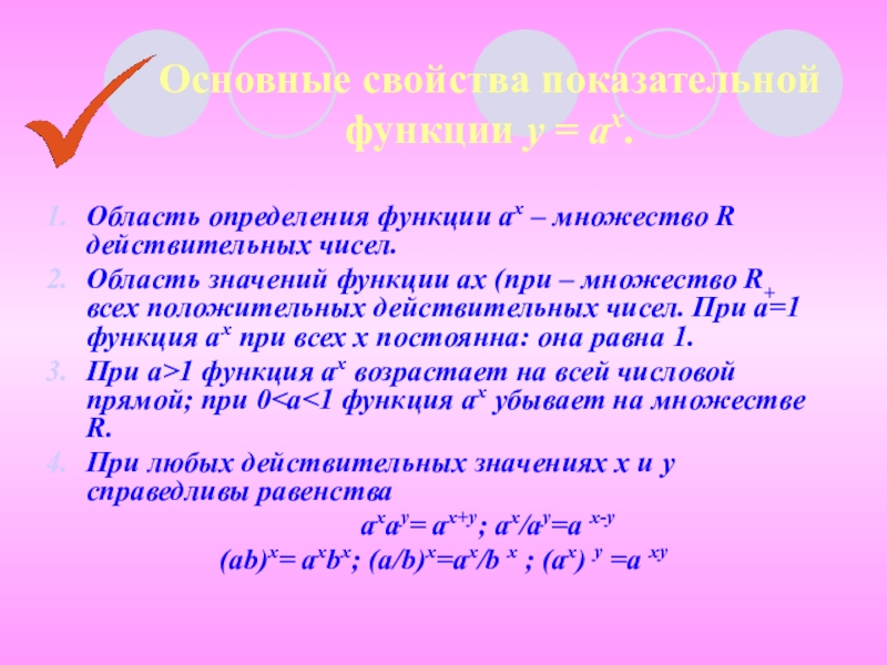 Перечислите свойства функции у = 3х