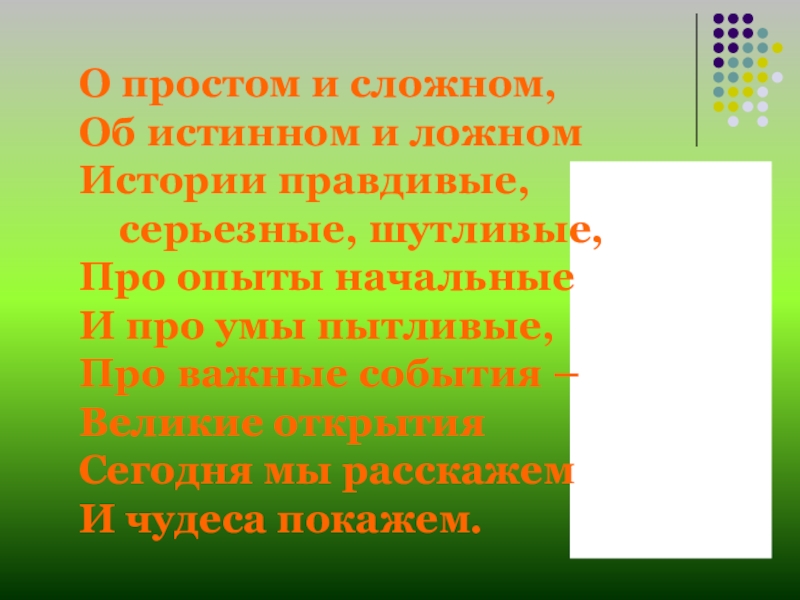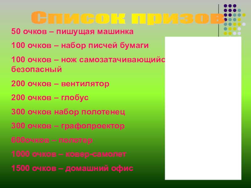 Это сайт презентаций, где можно хранить и обмениваться своими презентациями, докладами, проектами, шаблонами в формате PowerPoint с другими пользователями. Мы помогаем школьникам, студентам, учителям, преподавателям хранить и обмениваться учебными материалами.