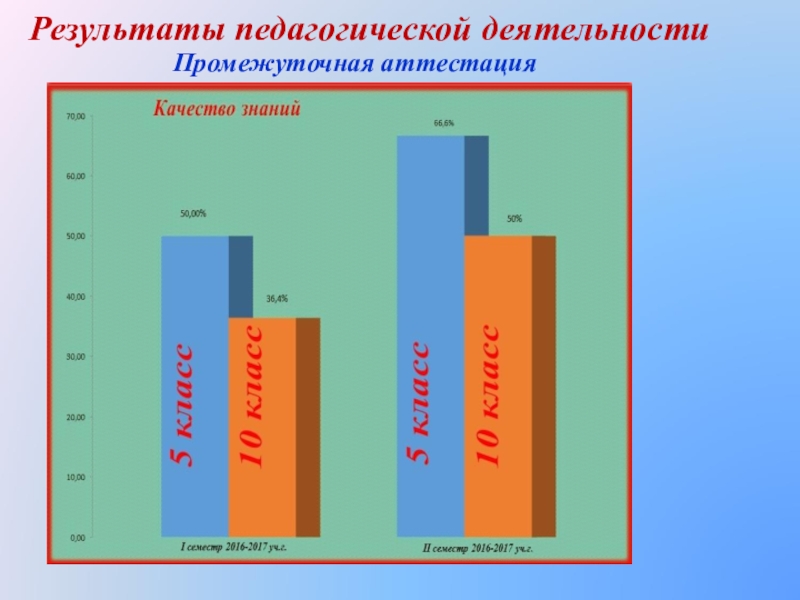Слайд 8Результаты педагогической деятельности Промежуточная аттестация