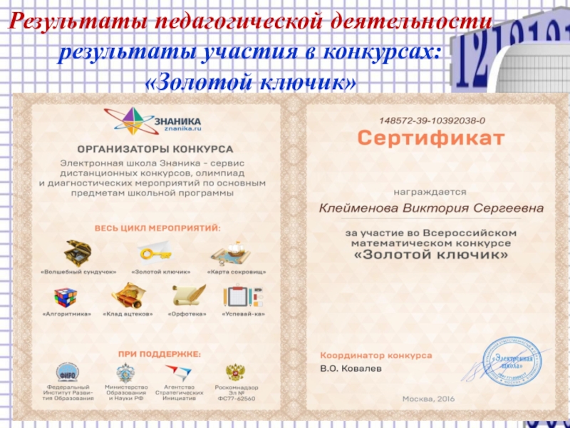 Результаты педагогической деятельностирезультаты участия в конкурсах:«Золотой ключик»