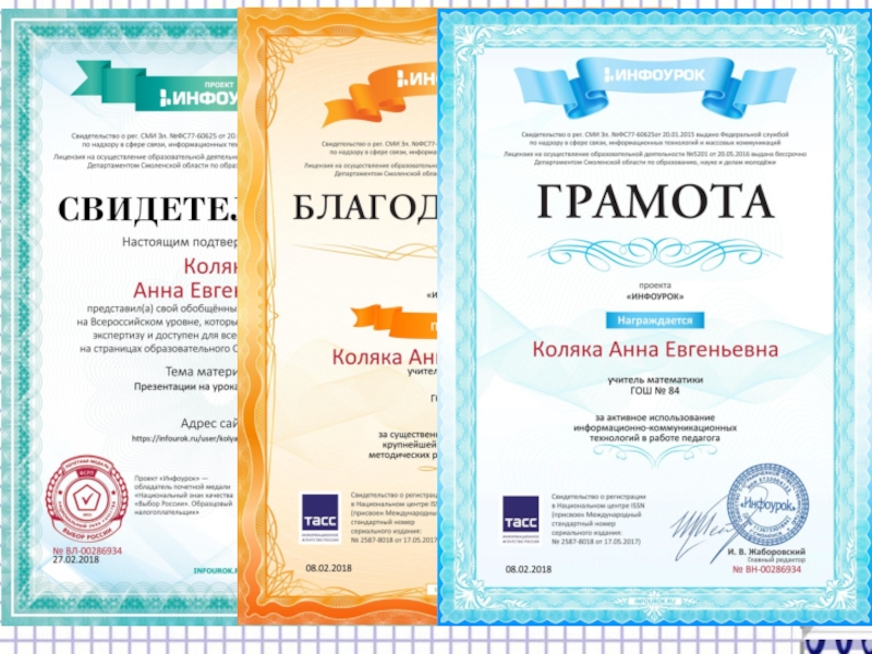 Портфолиоучителя математикиКоляка АнныЕвгеньевны