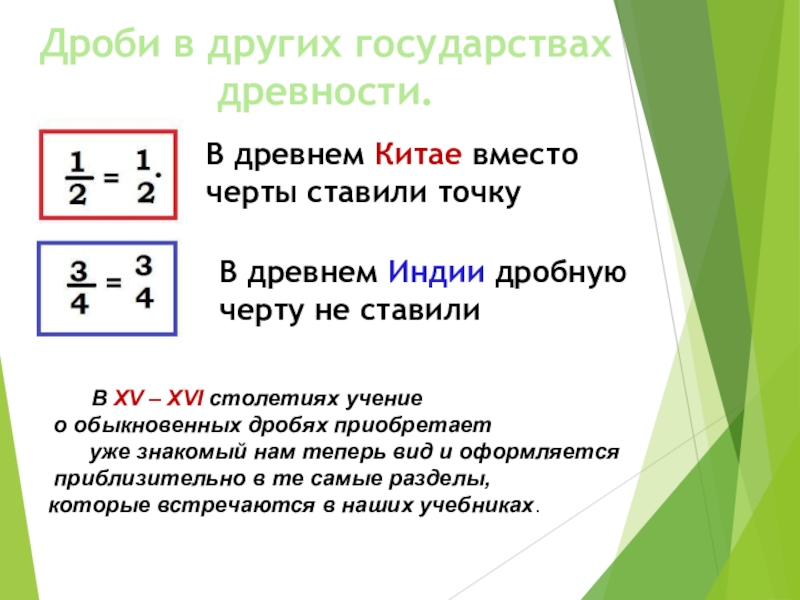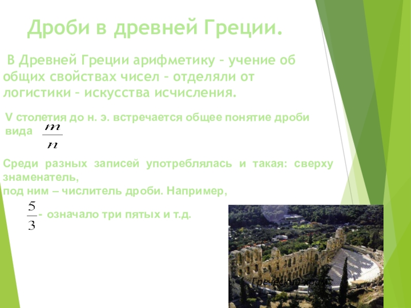 Среди разных записей употреблялась и такая: сверху знаменатель,