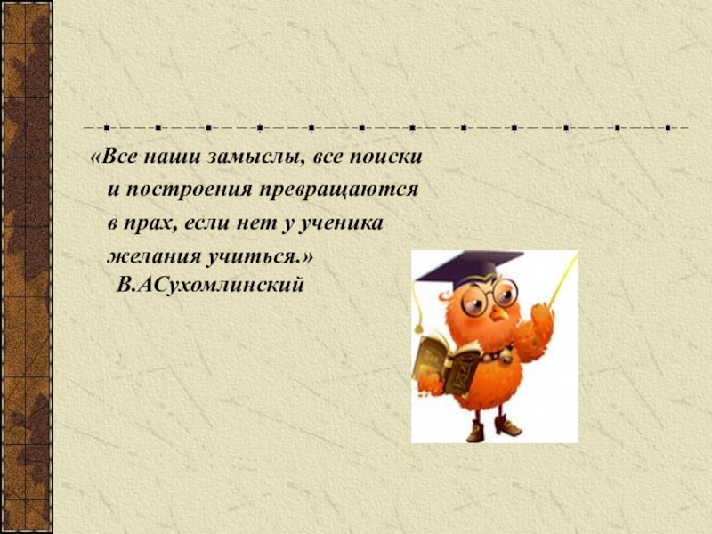 «Все наши замыслы, все поиски и построения превращаются в прах, если нет у ученика желания учиться.»