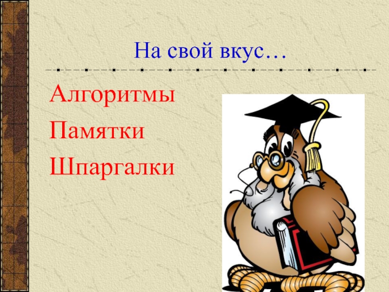На свой вкус…Алгоритмы ПамяткиШпаргалки