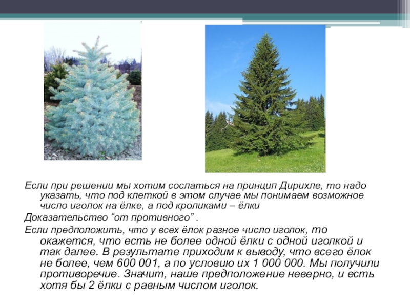 указать, что под клеткой в этом случае мы понимаем возможное число иголок на ёлке, а под кроликами – ёлки