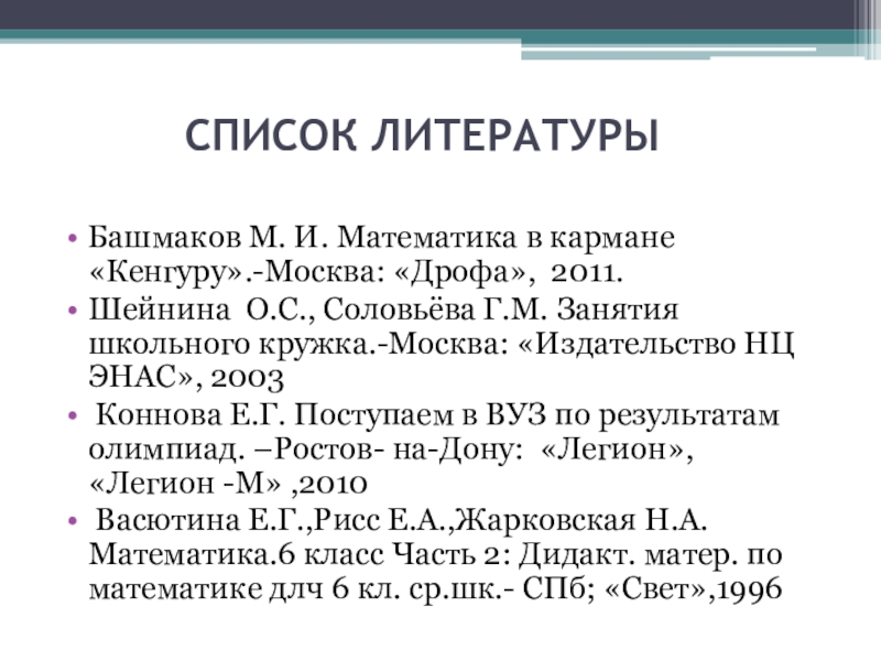 Слайд 12 СПИСОК ЛИТЕРАТУРЫ