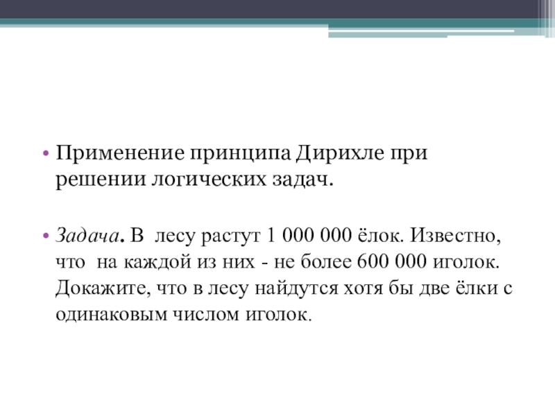 Слайд 7Применение принципа Дирихле при решении логических задач.