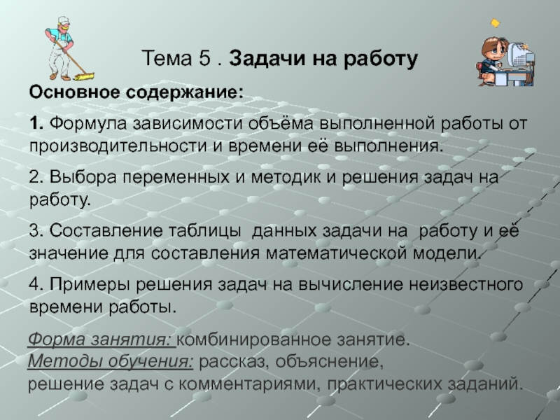Методы обучения: рассказ, устные и письменные упражнения, выполнение практических заданий, проверка усвоенного материала, решение тренировочных задач по карточкам