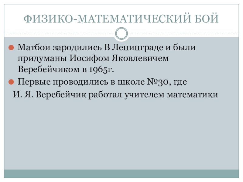 Слайд 1ФИЗИКО-МАТЕМАТИЧЕСКИЙ БОЙ