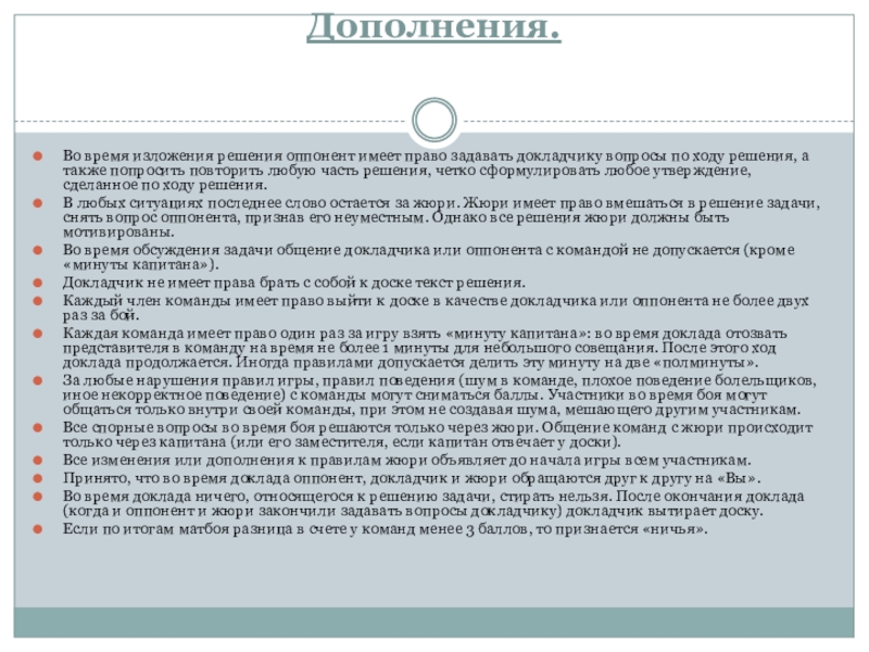 Все изменения или дополнения к правилам жюри объявляет до начала игры всем участникам.