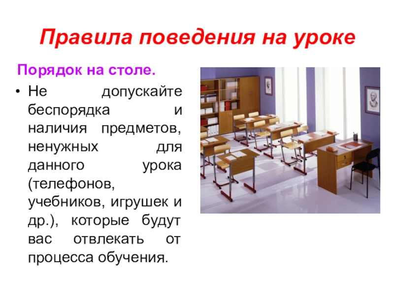 предметов, ненужных для данного урока (телефонов, учебников, игрушек и др.), которые будут вас отвлекать от процесса обучения.