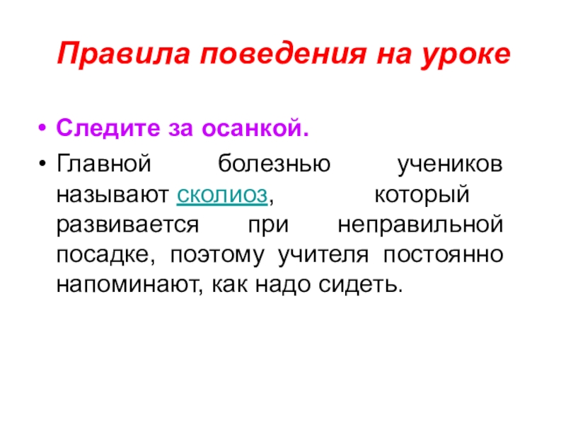 при неправильной посадке, поэтому учителя постоянно напоминают, как надо сидеть.