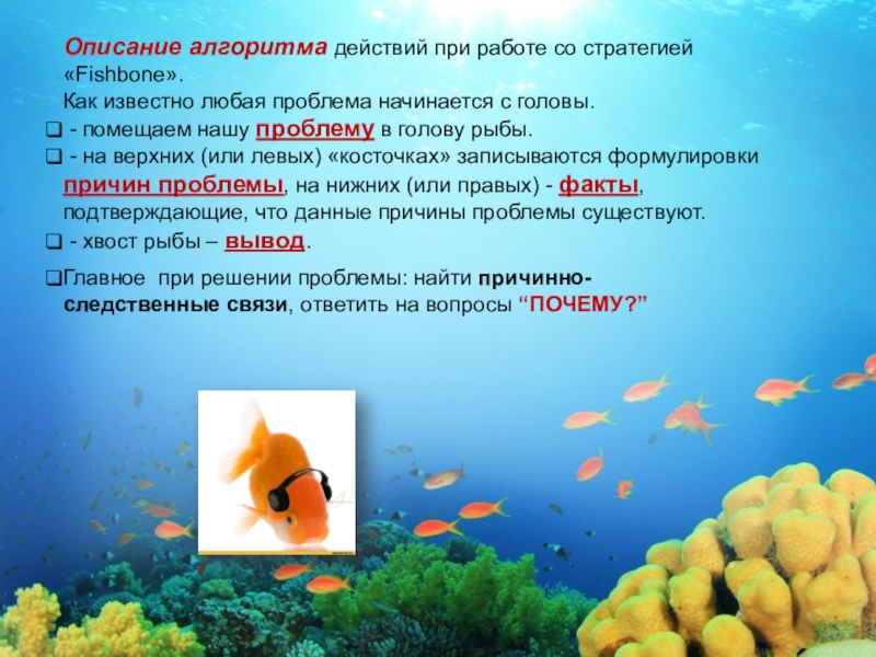 Слайд 12Описание алгоритма действий при работе со стратегией «Fishbone».