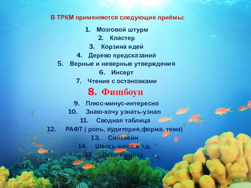 Слайд 8В ТРКМ применяются следующие приёмы: