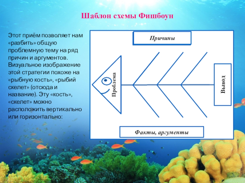 Слайд 10Схема Фишбоун («Рыбьи Косточки», «Рыбий скелет»)