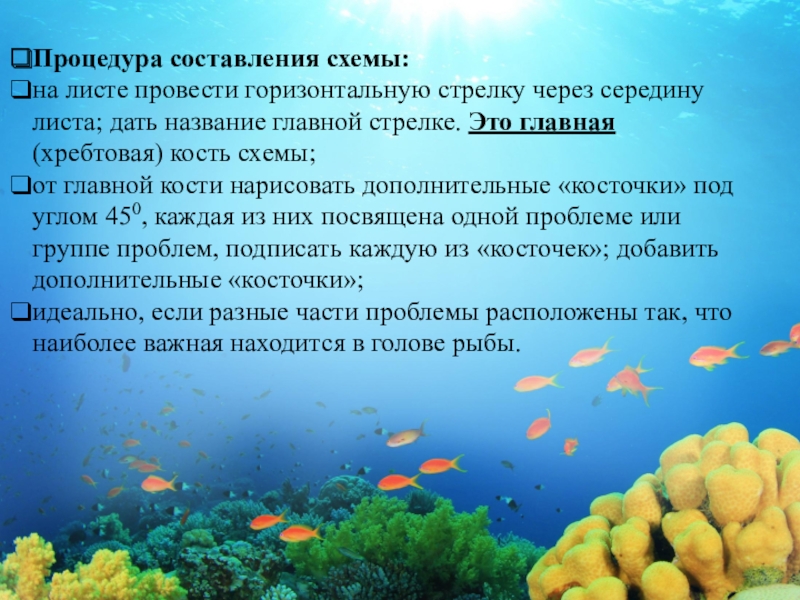 идеально, если разные части проблемы расположены так, что наиболее важная находится в голове рыбы.