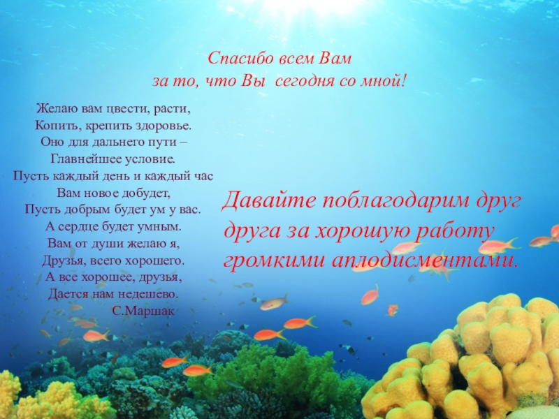 Давайте поблагодарим друг друга за хорошую работу громкими аплодисментами.
