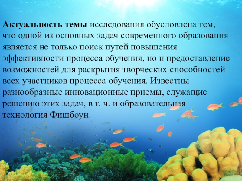 образования является не только поиск путей повышения эффективности процесса обучения, но и предоставление возможностей для раскрытия творческих способностей всех участников процесса обучения. Известны разнообразные инновационные приемы, служащие решению этих задач, в т. ч. и образовательная технология Фишбоун.
