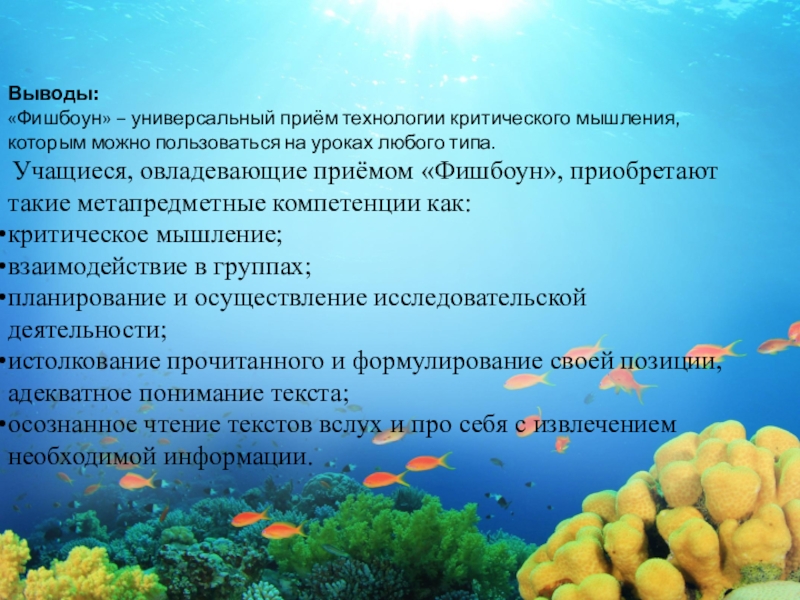 Учащиеся, овладевающие приёмом «Фишбоун», приобретают такие метапредметные компетенции как: