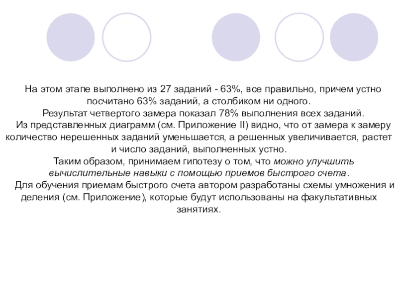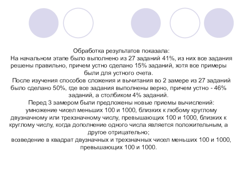 Практическая часть работы включала изучение динамики развития вычислительных навыков.